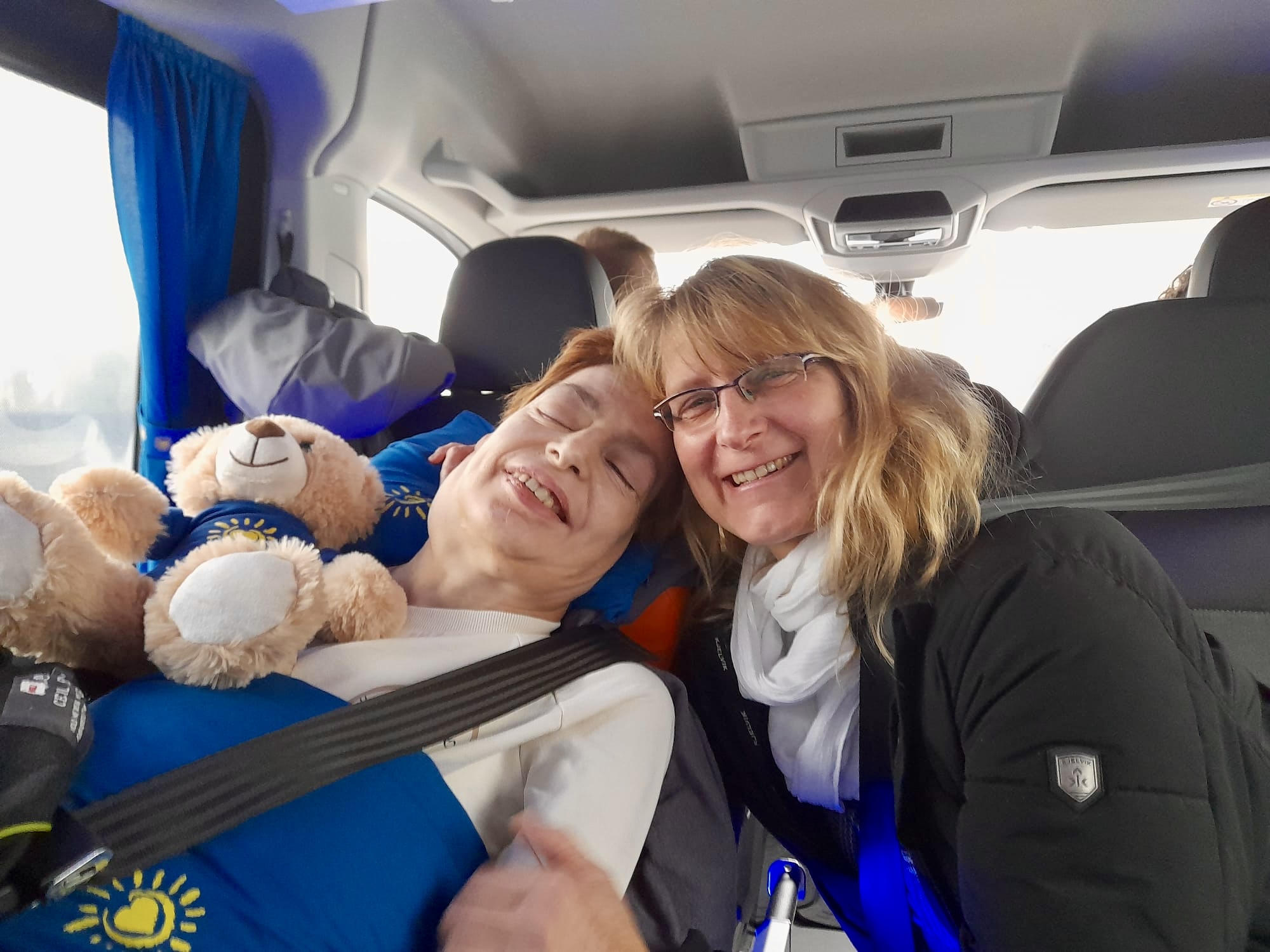 Bereits vor der Abfahrt waren eine ihrer Töchter, deren Mann, unsere Palliativfachkraft sowie ein Betreuer aus der Wohneinrichtung an ihrer Seite, um sie fürsorglich auf die Reise vorzubereiten. Gemeinsam machten wir uns dann auf den Weg. Da unser Gast schwer erkrankt ist, musste sie die gesamte Fahrt liegend verbringen. Ein Umstand, der die Bedeutung dieses Wunsches noch einmal deutlicher macht.