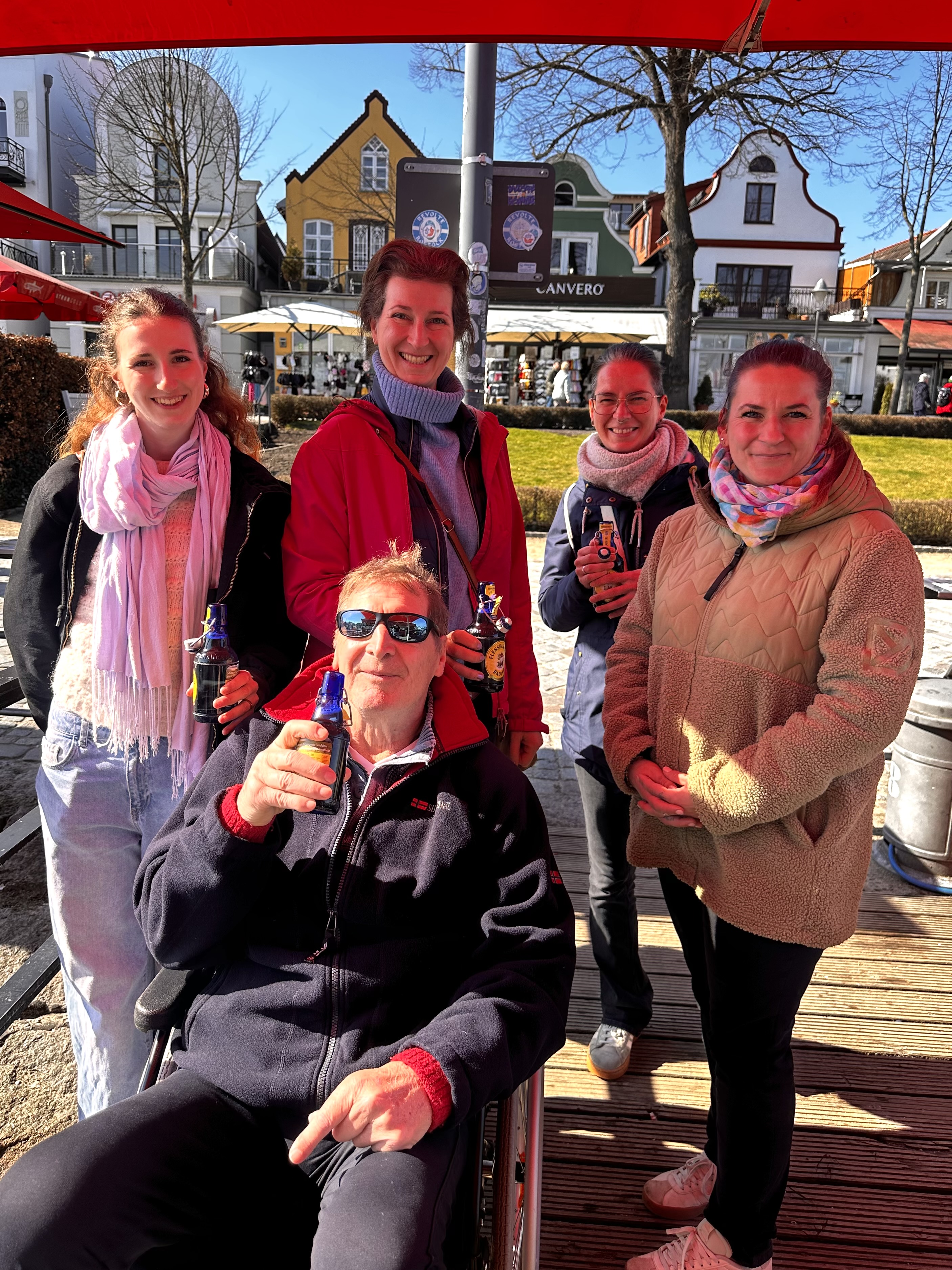 Gemeinsam mit unserem Gast aus dem Hospiz Haus Wegwarte in Neuruppin ging es nach Warnemünde. Mit dabei waren seine Tochter und seine Enkeltochter. Begleitet wurde die Fahrt von Schwester Anne vom Hospiz und Schwester Caro von MENSCH & MEHR.